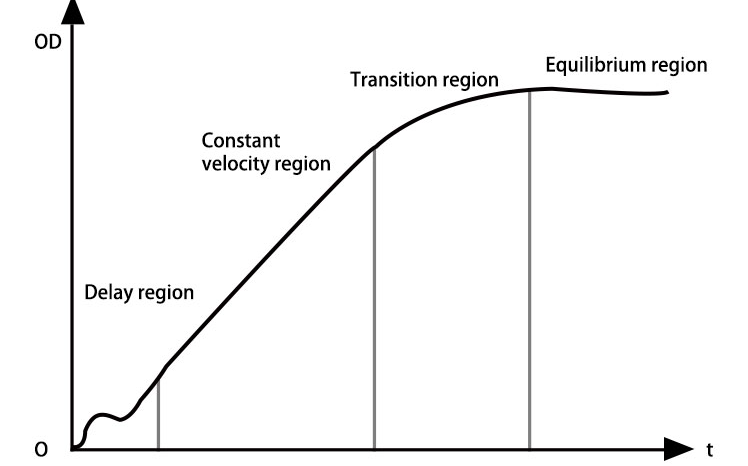 首先,我们了解一下化学反应的时间与吸光度一个曲线图,可以划分为四个区:延迟区、等速区、过渡区和平衡区,如下图所示:
