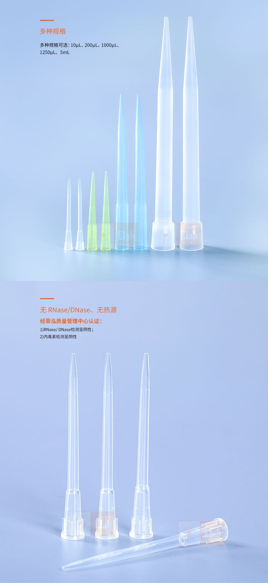 1000μL加长吸头 袋装 透明 无酶无热源 Elab CCM100003-L